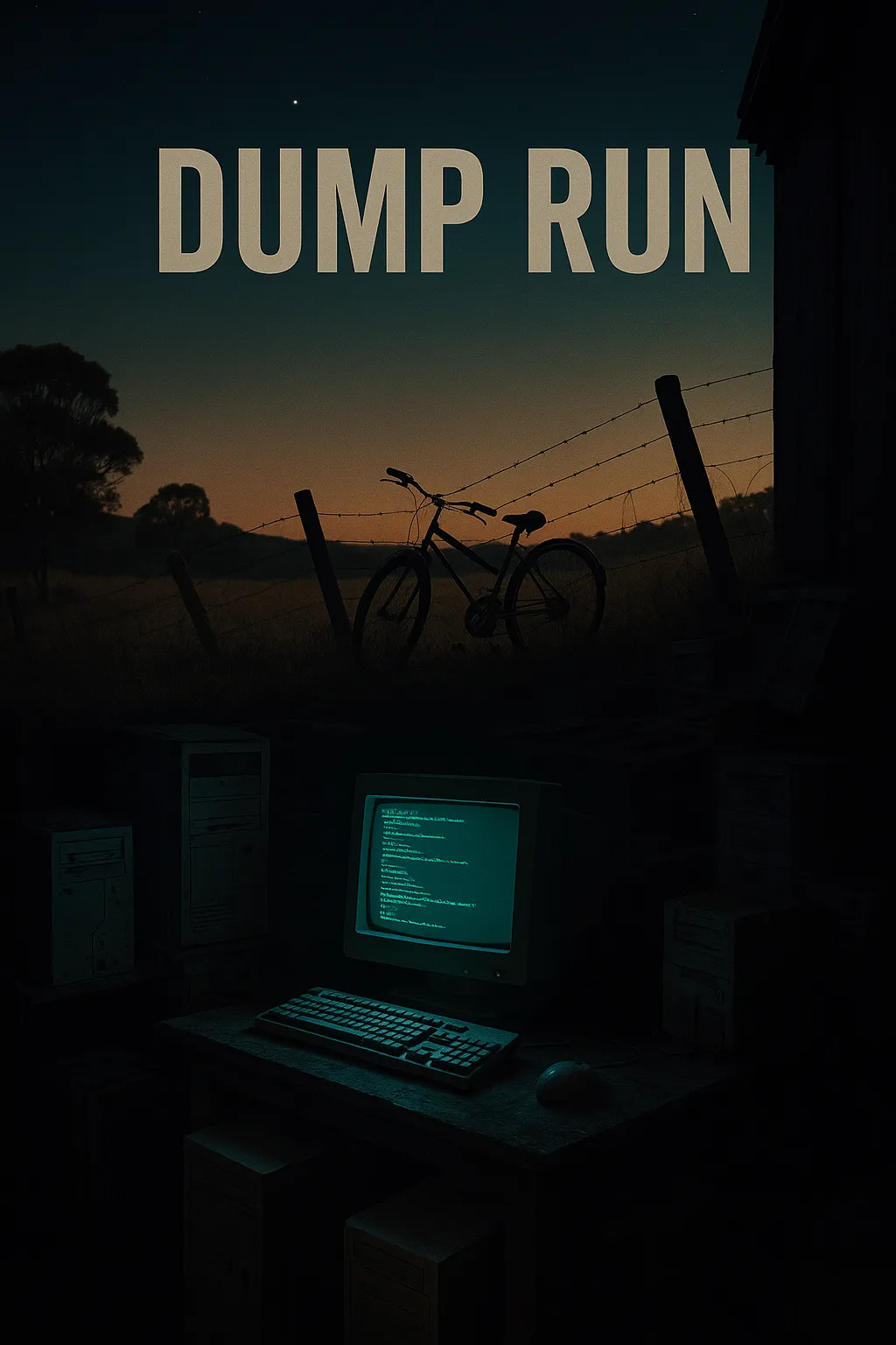 The shed was corrugated iron and smelled like dust and old oil. In the back corner, set apart from the general wreckage, sat two grey towers side by side on a pallet. One had ACCOUNTS written on it in faded texta. The other was unmarked, smaller, with a CD drive — an actual CD drive — in the front panel.