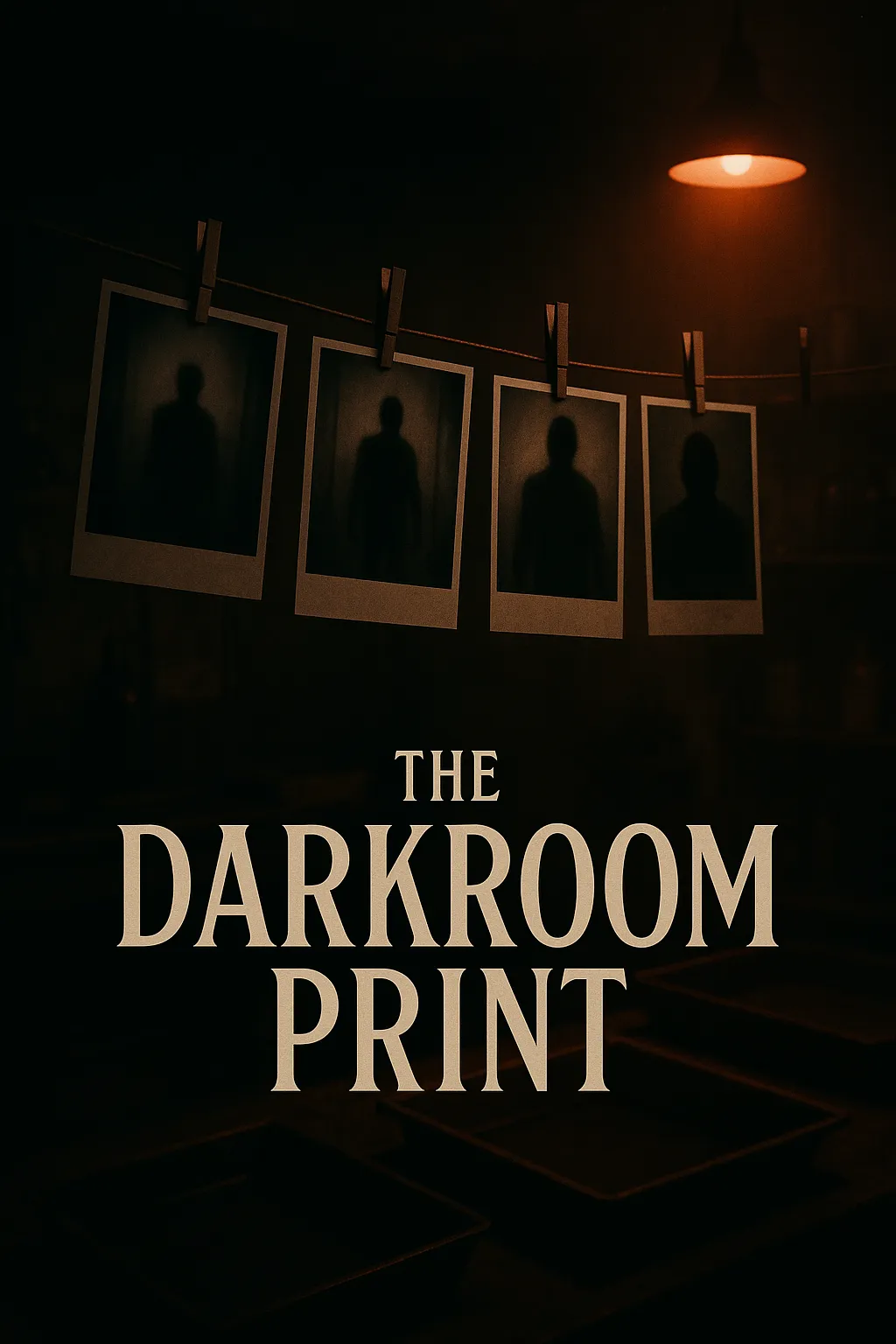 The fan pushed its stuttering air. The safelight hummed. Six wet prints hung from the line above the trays, dripping fixer onto the concrete floor, and in every one of them something stood where nothing had been.