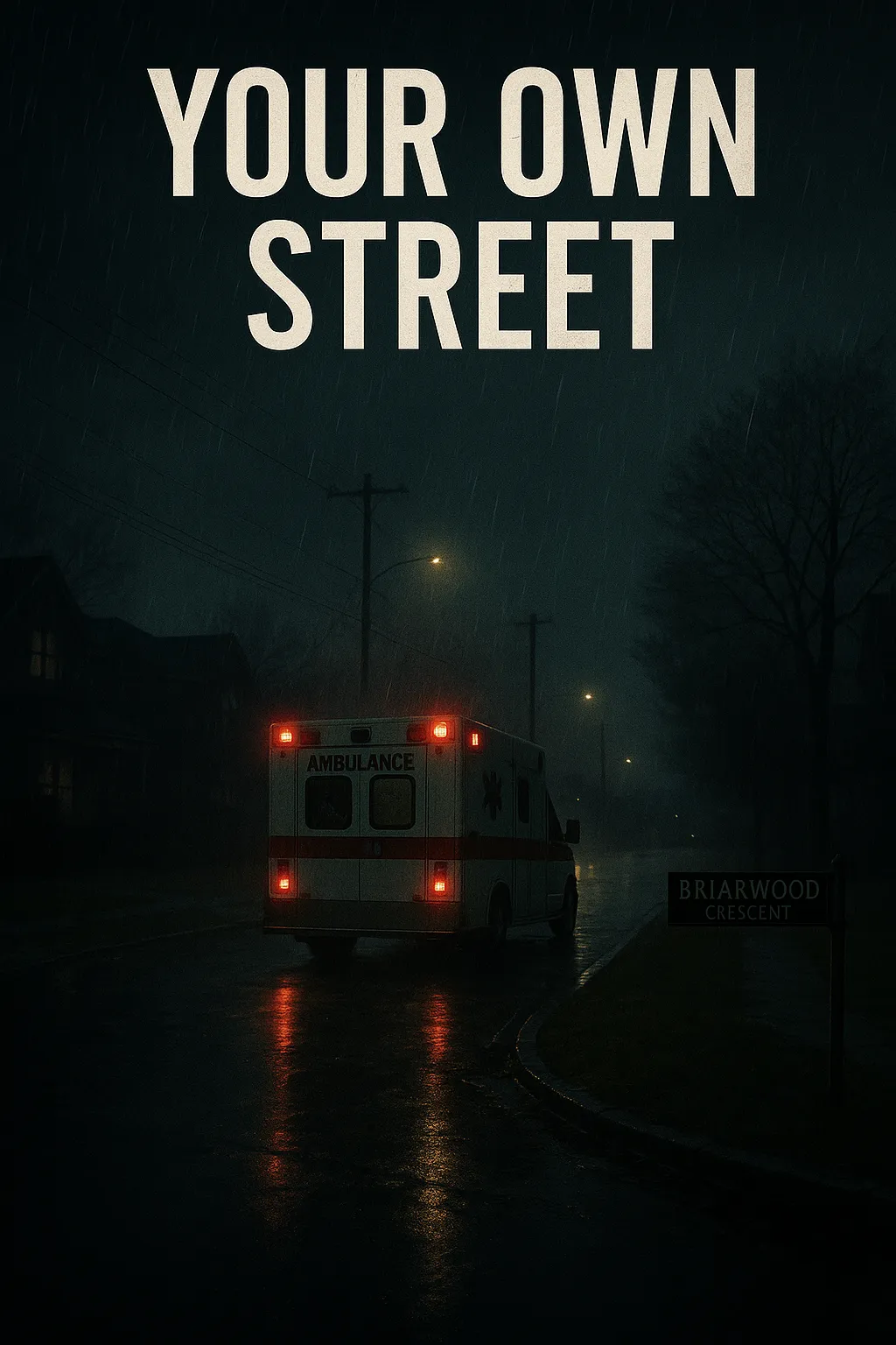 Through the windscreen, the railway bridge rose into view. His street was the second left after the bridge. Forty-five seconds. He could see the blue wash of their own lights bouncing off the bridge abutment, and beyond it, at the far end of Briarwood Crescent, a figure standing on the pavement in a way that nobody stands unless something has gone very wrong — arms at their sides, face turned toward the sound of the siren, waiting.